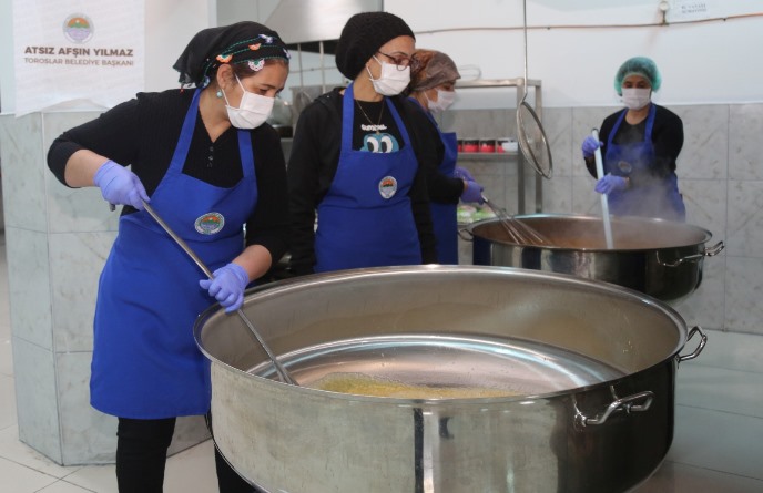 Toroslar Belediyesinden yapılan açıklamaya göre, 10 ili vuran iki büyük depremin yaralarını sarmak için tüm ekipleriyle ilk andan itibaren teyakkuza geçen belediye, Yunus Emre Kültür Merkezinde oluşturduğu kriz masasının yanı sıra yemekhanesi de ilçede konaklayan depremzede vatandaşlar için hizmet veriyor. Kazanlarda özenle hazırlanan sıcak yemekler, ilçedeki sosyal tesislerde ve gönüllü vatandaşların yanında kalan depremzedelere ulaştırılıyor.