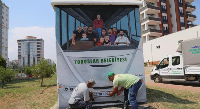 Çalışmada, Toroslar Belediyesinin kuruluş tarihi olan 1994, servisin plakası olarak ölümsüzleştirildi. Plaka, 33 TB (Toroslar Belediyesi) 1994 şeklinde tasarlanarak monte edildi. Uzaktan bakıldığında ise parkın içinde adeta bir otobüs bulunduğu izlenimi veren trafo, yeni görünümüyle yoğun ilgi çekiyor.