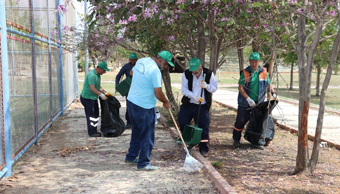 Belediye Park ve Bahçeler ile Temizlik İşleri Müdürlüğü ekiplerinin ortak çalışması ve iş makinesi marifetiyle, rutin temizlik hizmetinin yanında park ve yeşil alanlar, sokaklar, sahalar, çocuk oyun alanları, boş araziler baştan aşağı temizleniyor.