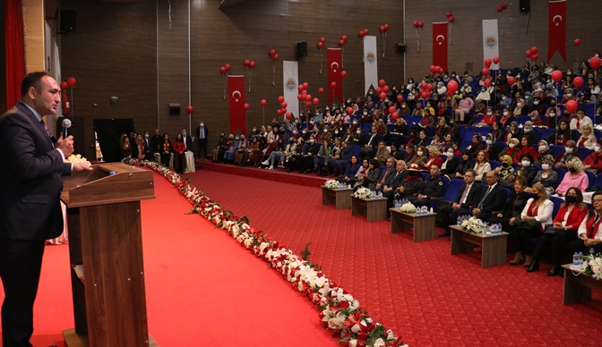 Programın açılışında konuşan İlçe Milli Eğitim Müdürü Nazmi Kendigelen, tüm kadınların gününü kutlayarak, “Hayatımızın her alanında olan kadınlarımız, toplumdaki tertibi ve düzeni sağlamanın yanında ev ekonomisine sundukları katkılarıyla da bizleri gururlandırmaktadırlar. Hayatımızı paylaşan tüm kadınlarımızın 8 Mart Dünya Kadınları Günü kutlu olsun” dedi.