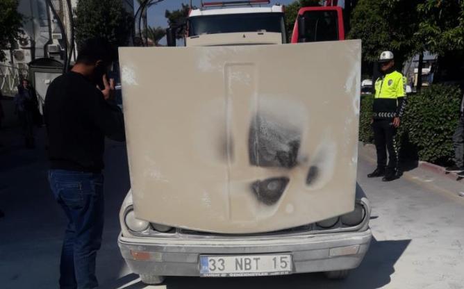 Olay, İsmetpaşa Mahallesi Mersin Caddesi üzerinde meydana geldi. H.Ç. idaresindeki 33 NBT 15 plakalı otomobil seyir halindeyken motor kısmından birden dumanlar yükseldi. Sürücü aracı durdurarak inerken, trafik polisleri araçlarında bulunan yangın tüpleri ile alevlere müdahale etti. Polislerin müdahalesiyle araçta yangın büyümeden söndürüldü. Olayda şans eseri yaralanan olmadı. (Mersin Times)