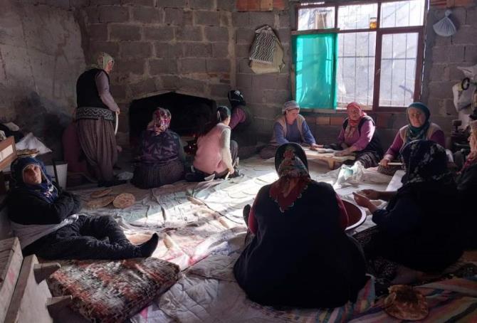 Öte yandan Tarsus’a bağlı Boğazpınarı köyü kadınları, deprem bölgesine gönderilmek üzere bir araya gelip, ekmek ve mayalı çörek yaptılar. (Mersin Times)