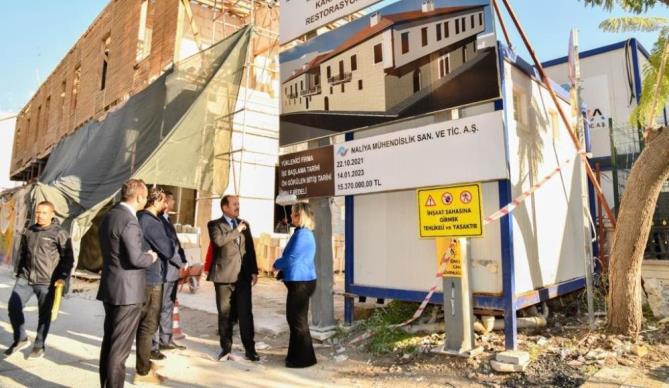 Pehlivan, Akdeniz ilçesi Cami Şerif Mahallesi Uray Caddesi üzerinde bulunan ve tamamlandığında Mersin Mutfak Kültürü Evi olarak faaliyet göstermesi planlanan Karamancılar Konağındaki restorasyon çalışmaları hakkında yüklenici firma yetkililerinden bilgiler aldı.
