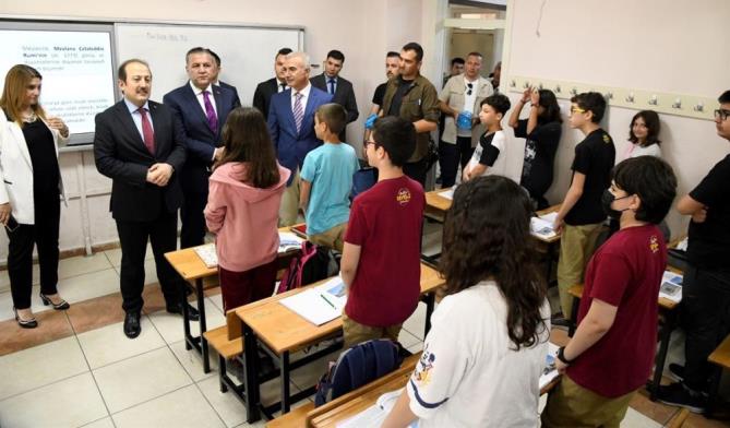 Vali Pehlivan, daha sonra 7-B sınıfını ziyaret ederek, öğrencilerin derslerine katıldı. Öğrencilere kitap hediye eden Pehlivan, Robotik Kodlama Atölyesini de ziyaret etti ve bilişim teknolojileri öğretmenlerinden atölye hakkında bilgi aldı, öğrencilerle robotik kodlama üzerine sohbet etti. (Mersin Times)