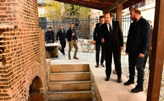 Vali Pehlivan, incelemeleri çerçevesinde Hadra Hamamı Kültür ve Sanat Evi’nde yürütülen çalışmalar ve faaliyetler ve ihtiyaç duyulan ilave restorasyon projesi hakkında Akdeniz Kaymakamı Zeyit Şener ve Akdeniz Belediyesi Kültür ve Sosyal İşler Müdürü Ali Uçar’dan bilgiler aldı.