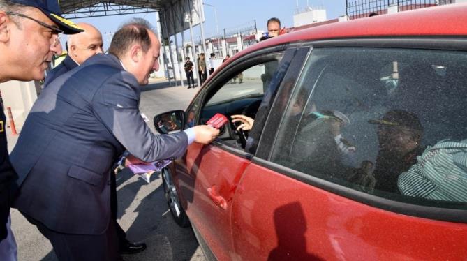 Valilikten yapılan açıklamaya göre, İçişleri Bakanlığı tarafından Kurban Bayramı tatilinde kazaları en aza indirmek, trafik düzeni ve güvenliğinin sağlanması amacıyla başlatılan ‘bayramınız kemerli olsun’ kampanyası çerçevesinde, ‘bayram yolunda, her şey yolunda’ sloganı ile Çeşmeli yol kontrol ve uygulama noktasında sürücülerle görüşen Vali Pehlivan, emniyet kemeri takılması ve hız limitine dikkat edilmesi konularında uyarılarda bulunarak trafik kurallarıyla ilgili uyarıcı bilgilerin yer aldığı broşürler dağıttı. Sürücülere hayırlı yolcuklar temennisinde bulunan Vali Pehlivan, sürücü ve yolcuların Kurban Bayramlarını kutladı.
