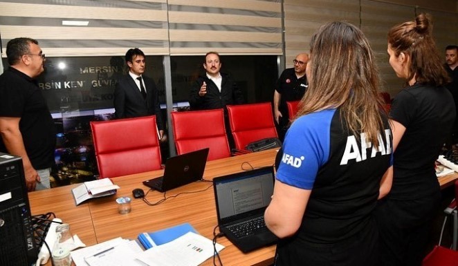 Meteoroloji Genel Müdürlüğü 6. Bölge Müdürlüğünün Mersin için yaptığı kuvvetli yağış beklentisine yönelik uyarıları doğrultusunda İl Afet ve Acil Durum Koordinasyon Kurulu, gece yarısı Vali Ali Hamza Pehlivan başkanlığında toplandı. 112 Acil Çağrı Merkezinde oluşturulan İl Afet ve Acil Durum Koordinasyon Merkezinde, 23 çalışma grubunda yer alan kurumların temsilcileriyle saat 00.30’da durum değerlendirmesi yapan Vali Pehlivan, kurul üyelerinden riskli bölgeler, alınan tedbirler ve mevcut durum hakkında detaylı bilgiler aldı.
