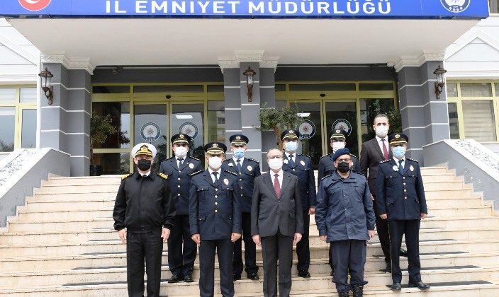 İl Emniyet Müdürü Mehmet Şahne ve rütbeli personel ile bir araya geldi Vali Su, Türk Polis Teşkilatının kurulduğu günden bu yana, ülkenin dört bir köşesinde, her türlü şartlarda, huzurun sağlanması ve asayişin temini için mesai mefhumu gözetmeksizin büyük bir özveri ve şeffaflık içerisinde bu zorlu görevi yerine getirdiğini söyledi. Su, Emniyet Müdürü Mehmet Şahne’nin nezdinde, kentte görev yapan tüm emniyet teşkilatı personeline teşekkür ederek bundan sonraki görevlerinde başarılar diledi.