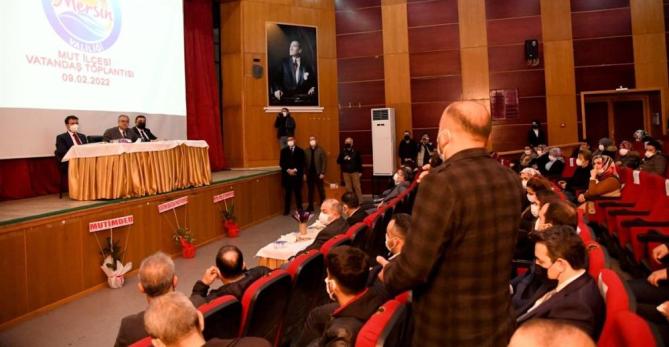Mersin Valiliğinden yapılan açıklamaya göre, Vali Ali İhsan Su, Mut Ziraat Odası toplantı salonunda ilçede görev yapan muhtarlarla bir araya geldi. Toplantıya, Vali Yardımcısı İbrahim Küçük, Mut Kaymakamı Batuhan Bingöl, Mut Belediye Başkanı Volkan Şeker, bölge müdürleri, kurum müdürleri ile ilçe muhtarları katıldı.