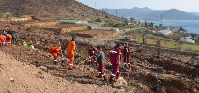 Yerleşim alanları çevresindeki yanan orman alanlarında arazi hazırlığı sürerken bir yandan da dikim çalışmalarına devam ediliyor. Yerleşim alanlarına bitişik yanmış orman alanlarına özellikle yangını yavaşlatıcı özelliği olan fidan türleri yanında, meyvesinden de faydalanılan keçiboynuzu, badem gibi fidanlar dikiliyor. Yine yangını yavaşlatmak amacıyla servi fidanı da dikiliyor.