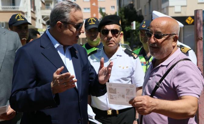 Yayalar için 5 adımda güvenli trafik kampanyası, Mersin’de tanıtıldı. GMK Bulvarı Sabancı Kız Lisesi önünde yapılan trafik uygulamasıyla hem yayalar hem de araç sürücüleri bilgilendirildi. Mersin Valisi Ali İhsan Su, beraberinde İl Emniyet Müdürü Mehmet Aslan ve İl Jandarma Komutanı Tuğamiral Necip Çarıkcıoğlu ile vatandaşlara broşürler dağıtarak, yaya geçitlerindeki kurallarla ilgili bilinçlendirdi.