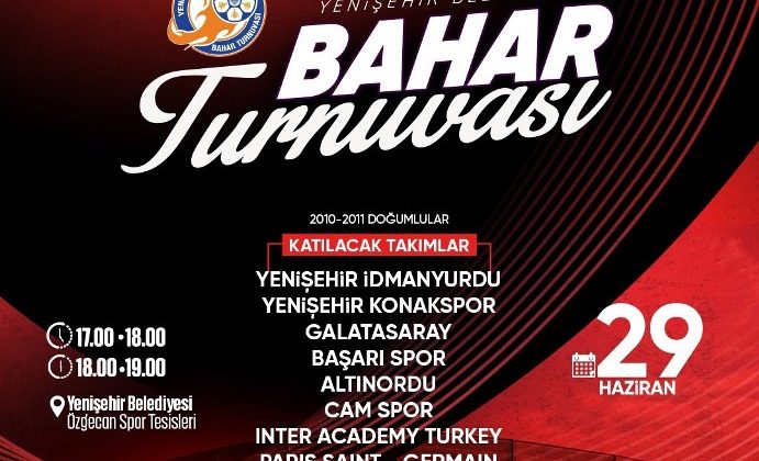 Mersin’in merkez ilçe Yenişehir Belediyesinden yapılan açıklamaya göre, çocukların ve gençlerin spora teşvik edilmesi, her yaş düzeyinden sporcuların spor organizasyonlarında yeteneklerini sergileyebilmesi için Bahar Turnuvası düzenlenecek. Yenişehir Belediyesi, Bahar Turnuvası ile 10 ve 11 yaş grubundaki futbolcuların turnuva deneyimi yaşamasını sağlayacak. Yenişehir Belediyesi Özgecan Aslan Tesislerinde yapılacak turnuvada 8 takım şampiyonluk için ter dökecek.