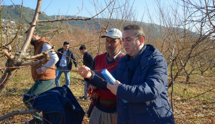 Değirmençay Mahallesi’nde şeftali ağaçlarının kış budamasını yapan çiftçilere doğru dal kesiminin yeniden filizlenme aşamasındaki önemini uygulamalı olarak anlatan Yenişehir Belediyesinden görevli Yüksek Ziraat Mühendisi Güven Murat Davşanoğlu “Yenişehir Belediye Başkanımız Abdullah Özyiğit, kaliteli ve verimli tarımsal üretimi çok önemsiyor. Tarımsal Danışmanlık Hizmeti, Belediyemize ait bir proje. Bu proje ile üreticilerimizin yanında olduğumuz gibi onlara ekim, dikim, budama, seyreltme, ilaçlama, gübreleme konularında bilgilendirmede bulunuyoruz. Bu sayede doğru tarım uygulaması da yapmış oluyoruz. Talepte bulunan çiftçilerimizle arazilerine gidiyoruz, incelemeler yapıyor ve en doğru yöntemi kendilerine anlatıyoruz. Kış budaması üretimin en önemli aşaması. Hem verim hem de ağacın genç kalması için doğru budama yapılmalı. Ayrıca doğru budama meyvelerin kaliteli olmasını da sağlayacak. Bu nedenle bugün burada çiftçilerimize bilgiler verdik.” dedi.