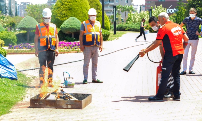 Yangın söndürme tüplerinin çeşitleri ve bakımı hakkında da bilgi veren Derya, yangın tüpüyle müdahalenin ardından su ile soğutulması gerektiğini, soğutulmaması halinde yangının tekrardan alevlenebileceğini söyledi. Telaş ve dikkatsizliğin yangın anında daha büyük felaketlere yol açacağını aktaran Derya, yangın mevzuatının okullarda yer almasının ve öğrencilere eğitimler verilmesi gerektiğini aktardı. Verilen bilgilerin ardından Yenişehir Belediyesi personeline uygulamalı olarak yangın söndürme eğitimi de verildi. (Mersin Times)