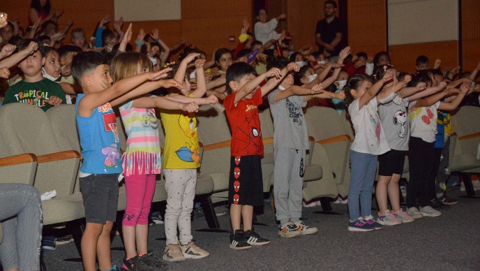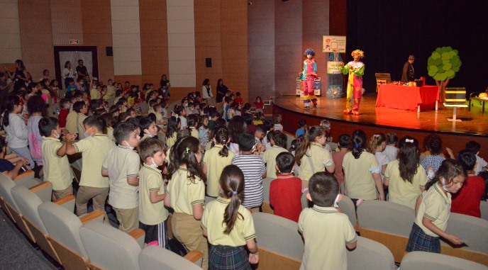 Seyirciler arasından seçtikleri çocukları sahneye davet eden oyunun kahramanları, onlarla geri dönüşüm hakkında sohbet edip oyunlar oynadı. Sahneye çıkan minik seyircilere, tişört hediye edilerek çevreci kahraman ilan edildi. (Mersin Times)