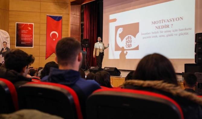 MERCİ Danışmanlık Merkezinde sosyal hizmetler uzmanı olarak görev yapan Ceyda Dinçer’in konuşması ile başlayan etkinlikte; Psikolog Yorulmaz, öğrencilere “Motivasyon Kaynakları, Sınav Kaygısı, Meslek Seçimi, Motivasyon Örnekleri” konularında sunum yaptı. Sunumun ardından ise Kent Orkestrası sahne aldı. Etkinlik öncesi öğrencilere, ‘1 Ekmek 1 Çorba’ ile çay ve kahve ikramı da yapıldı.