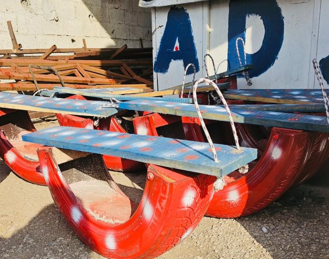 Yumurtalık Belediyesi’nin atıl durumdaki malzemeleri geri dönüştürdüğüne işaret eden Başkan Altıok, geri dönüşüm hizmetinin sadece çöp konteynerleriyle sınırlı kalmadığını vurguladı. Başkan Altıok, “Belediyemizde geçmişten bu yana atıl durumda bulunan lastik, palet gibi malzemeleri geri dönüşüm fikri ile ilkokul çocuklarına oyun malzemelerine dönüştürdük. Atıl malzemeleri bilek güreşi masası, oyuncak ve kale gibi materyallere dönüştürdük. Dönüştürdüğümüz materyalleri okullara dağıttık. Ayrıca okulların bahçelerine sek sek çizdik. Okullarda, öğrencilerimizin dört işlemi uygulamalı öğrenebilecekleri şekiller yaptık ve boyadık” diye konuştu.