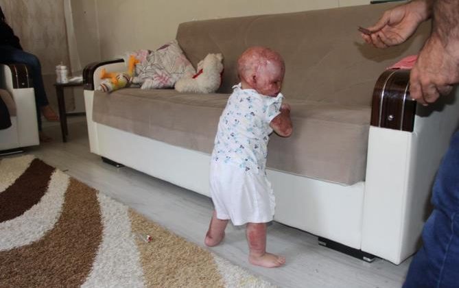 Esed rejiminin saldırılarından kaçarak İdlib’deki çadır kente yerleşen Dugaym ailesinin en küçük bireyi olan Delal bebek, 1 Ocak’ta çadırlarında çıkan yangında çok ağır yaralandı. Bir ablası yangında yaşamını yitiren Delal bebeğin de özellikle vücudunun üst kısmı ve başı üçüncü ve dördüncü derece yandı. Götürüldüğü sınır ötesindeki hastanede ‘yaşamaz’ denilen minik Delal, 11 Ocak’ta Mersin Şehir Eğitim ve Araştırma Hastanesi Yanık Merkezine getirildi. Vücudunun yüzde 40’ı tamamen yanmış halde hastaneye getirilen ve doktorları bile şok eden minik Delal, üç kez ölümcül sepsis geçirmesine karşın, yaşama tutunma içgüdüsü ve doktorların aylar süren mücadelesinin ardından sağlığına kavuşarak taburcu oldu.