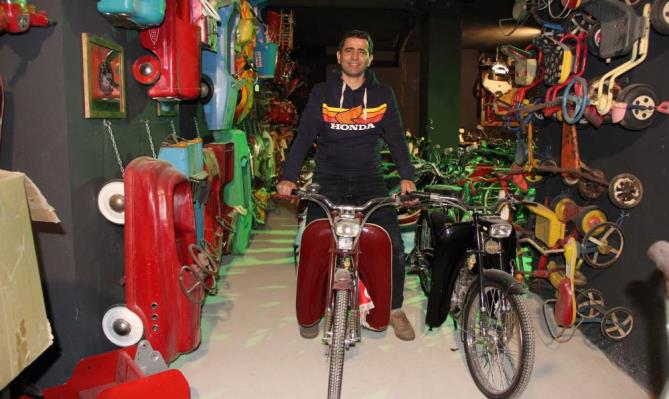 Motosiklet bayii sahibi ve aynı zamanda motosiklet yarışlarında 100 civarında Türkiye şampiyonluğu bulunan iş insanı Oktay Dal, deposunun kapılarını açarak, nostaljik eşya toplama serüvenini anlattı. Siyah-beyaz fotoğraflarda gördüğü babasının kullandığı mobilet ve çakmak gazı dolum aletinden yola çıkarak, kendisini zaman tünelinin etkileyici dünyasına kaptırdığını belirten Dal, “Babamın işi çakmak gazı dolumu üzerineydi. Babamın kullandığı bir de mobileti vardı. Fotoğraflarda görünce o gaz dolum aletini de mobileti de yeniledim. Ondan sonra eskiye bir yolculuk başladı bende. Eski dönem kullandığım kıyafetler, oyuncaklar derken, bir yıl içerisinde böyle bir serüven yaşadım. Benim için zaman tüneli. Bir yıl içerisinde bütün bunları topladım. Motosiklet hem ilgi alanım hem de işim olduğu için motosiklet, bisiklet, çocuk oyuncakları, çocuklar için üretilen eski pedallı oyuncak arabalar, bakkaliye, Devlet Demir Yolları, PTT, polis malzemeleri, benzin istasyonu ürünleri gibi birçok birikimim var” dedi.